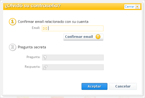 También tienes la opción de introducir la pregunta secreta para recordar la contraseña que indicaste en el primer registro.