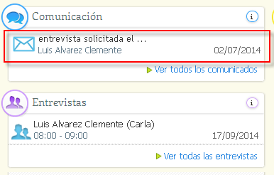 Si un profesor o tutor realiza una solicitud de entrevista, automáticamente en Alexia Web, recibirás un comunicado que te informará de la solicitud de la misma.